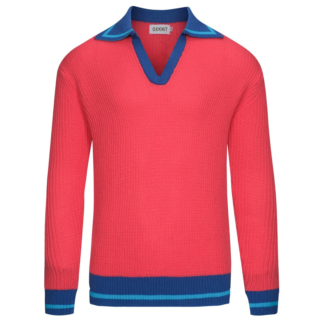 Men's blue striped retro knitted polo shirt