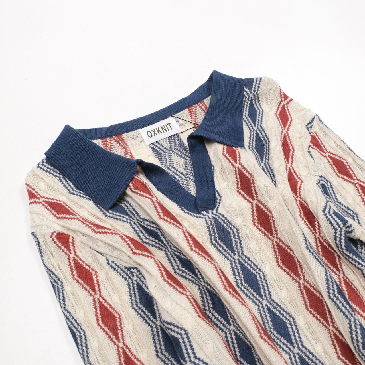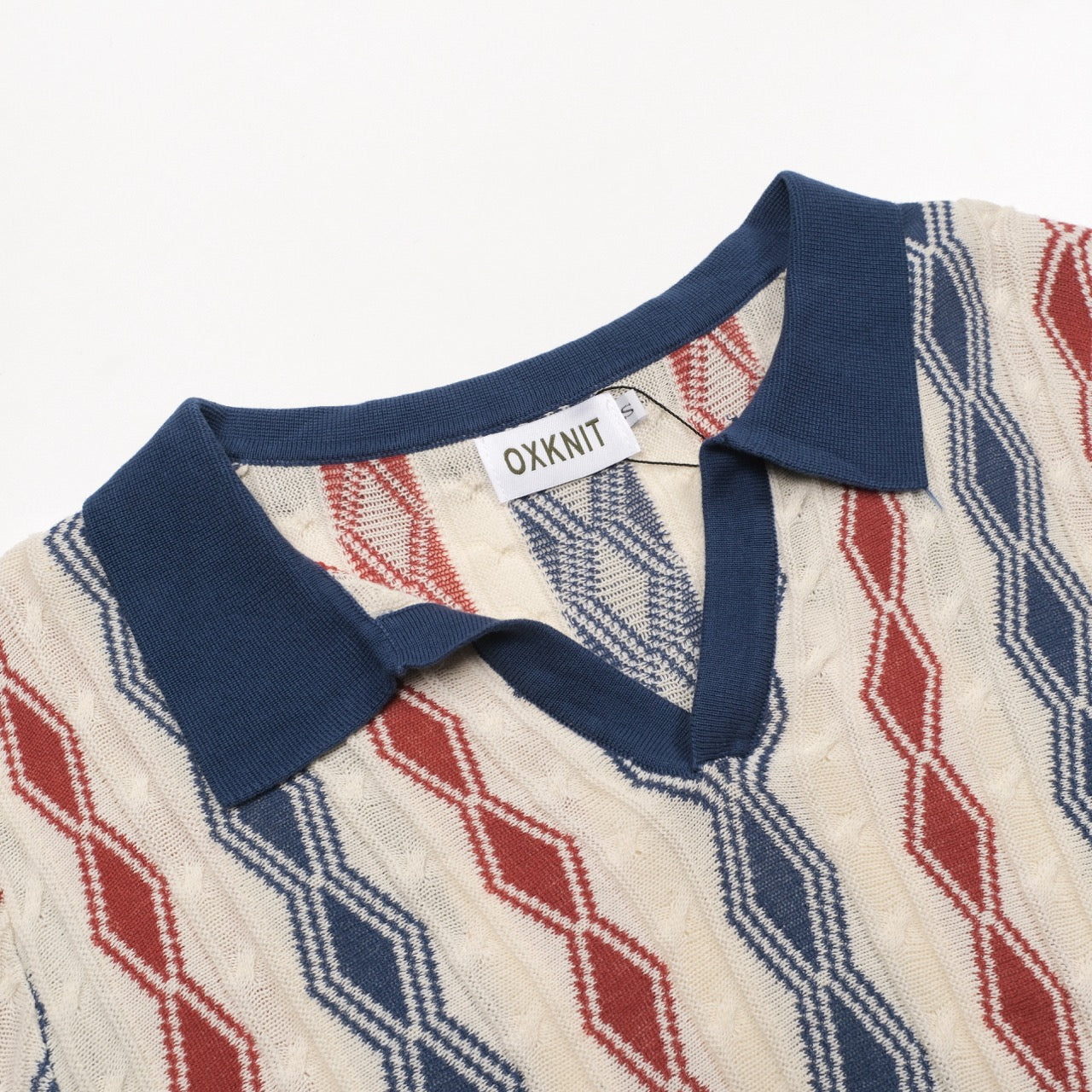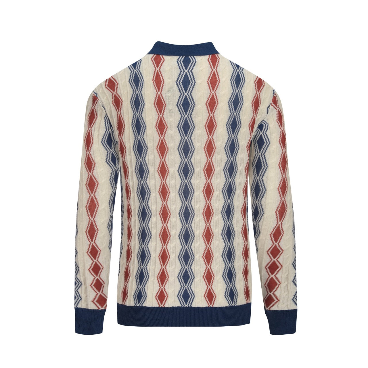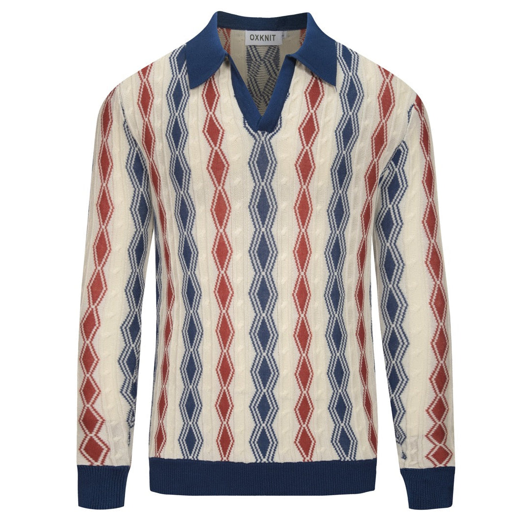 Men's dark blue vintage casual V-neck polo knitwear