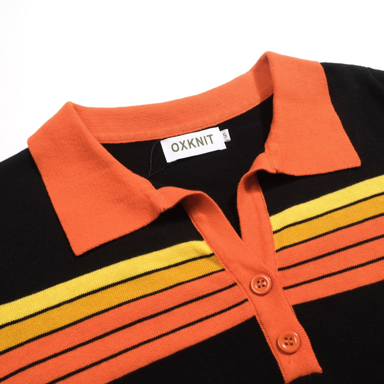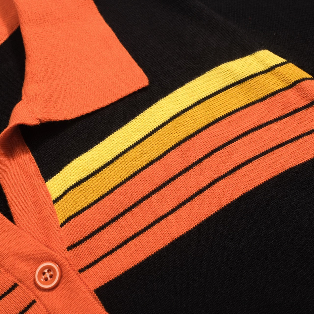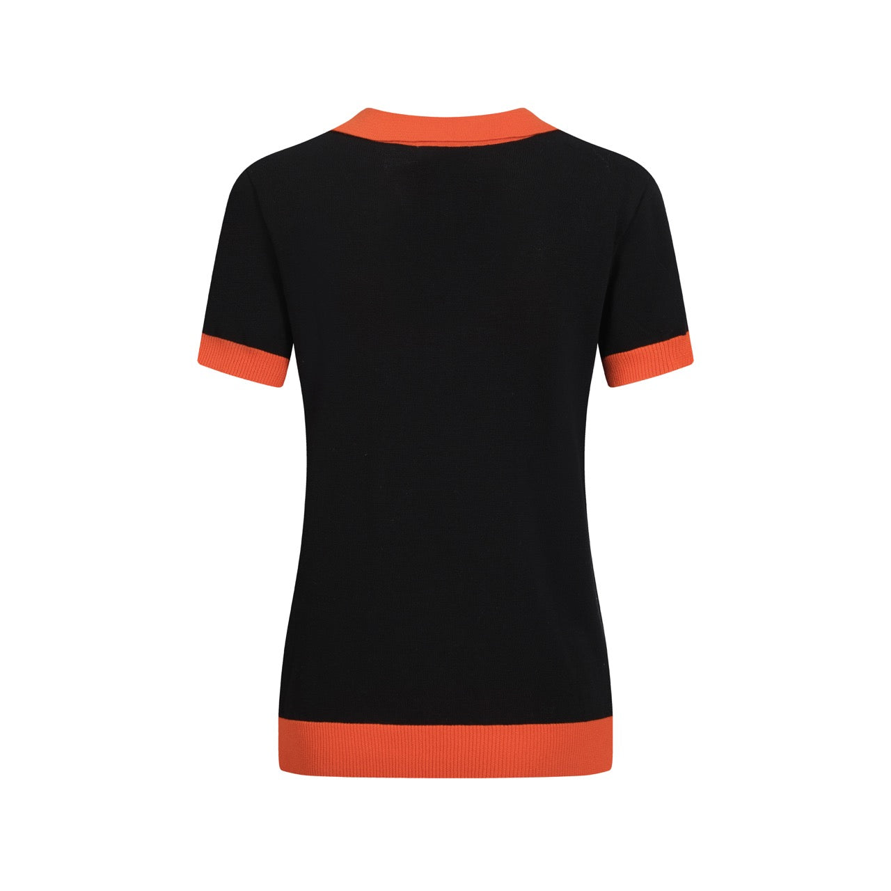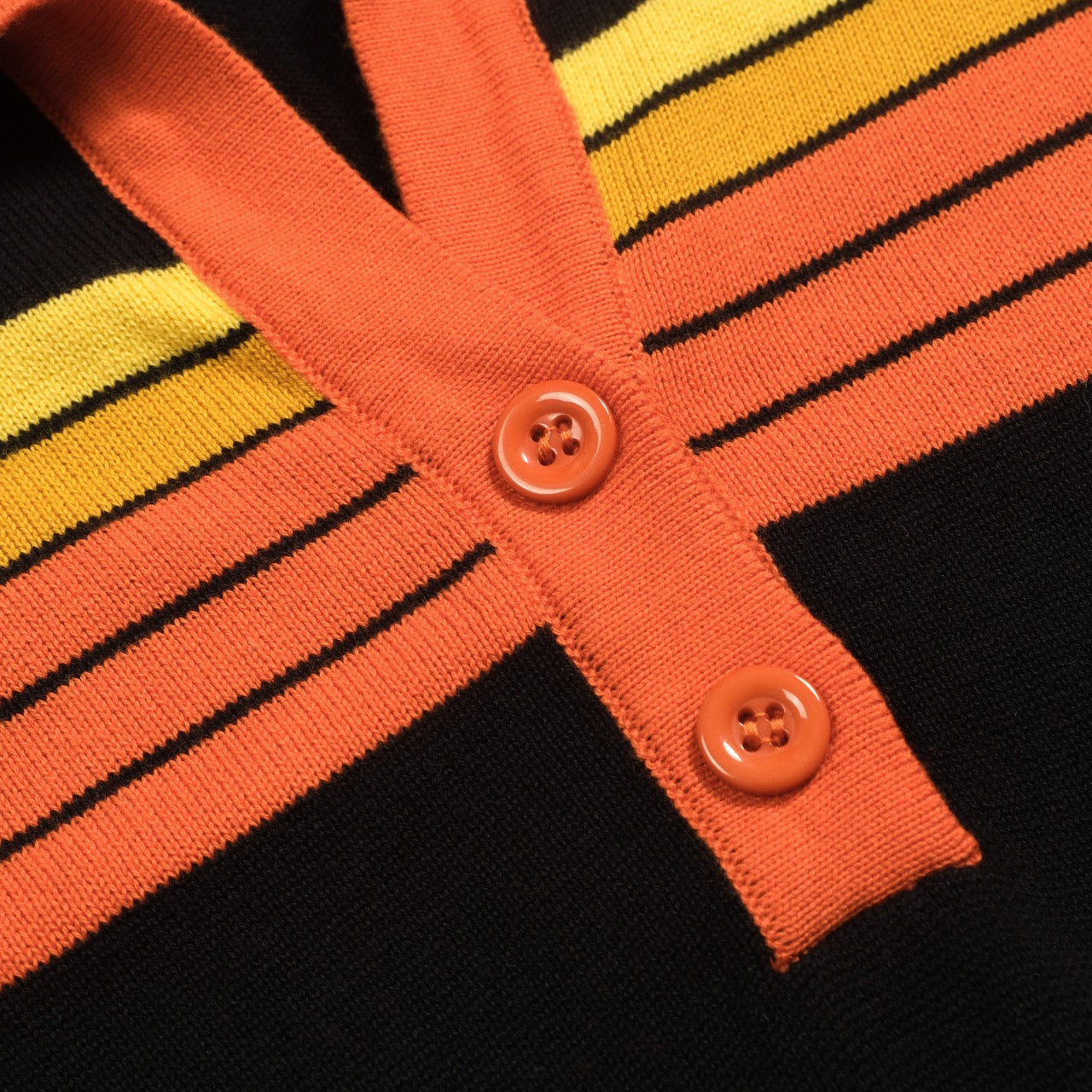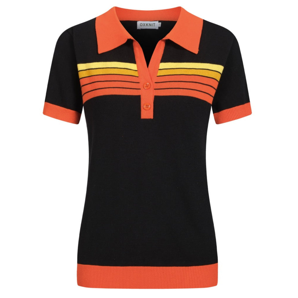 Women's black vintage art striped Jacquard V-neck polo