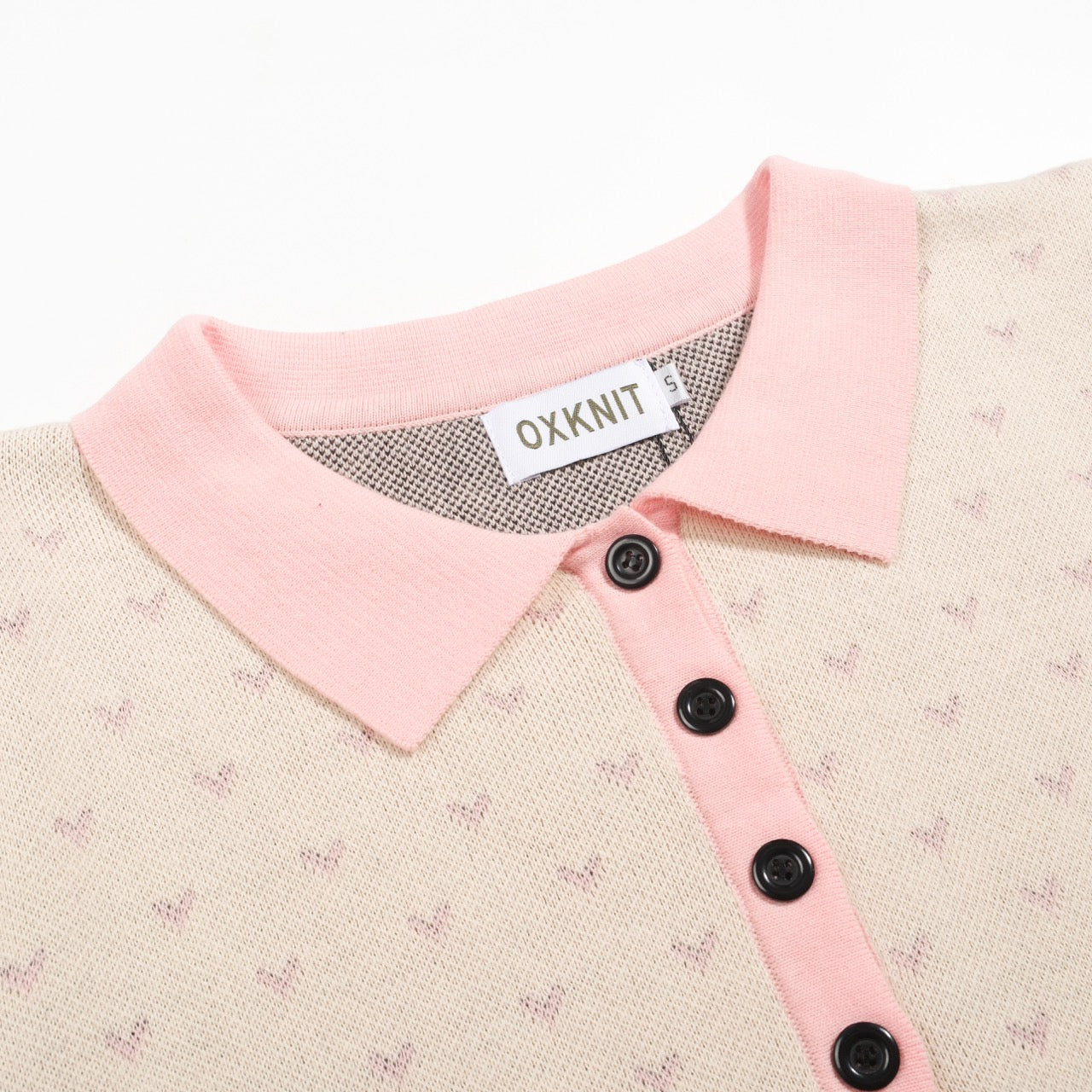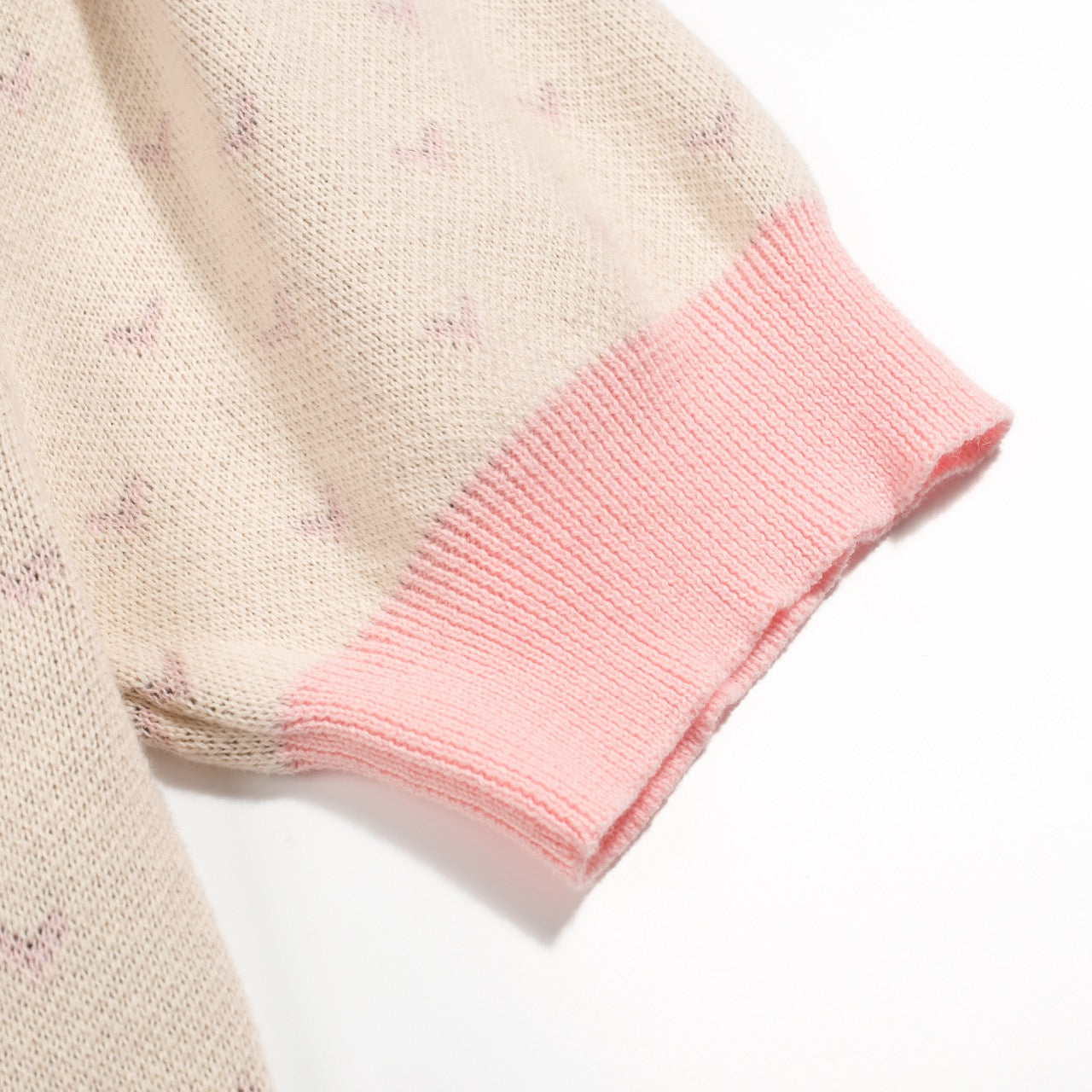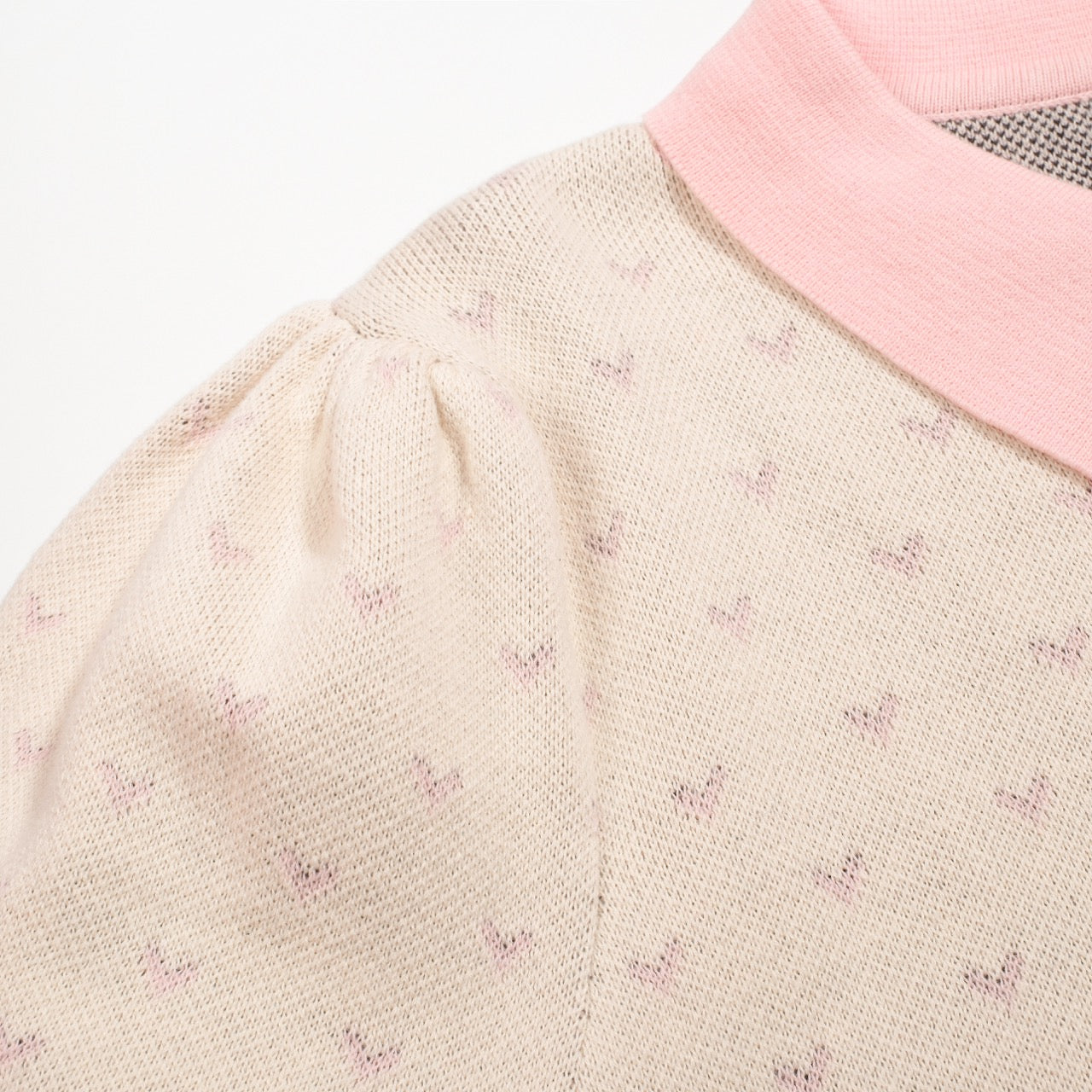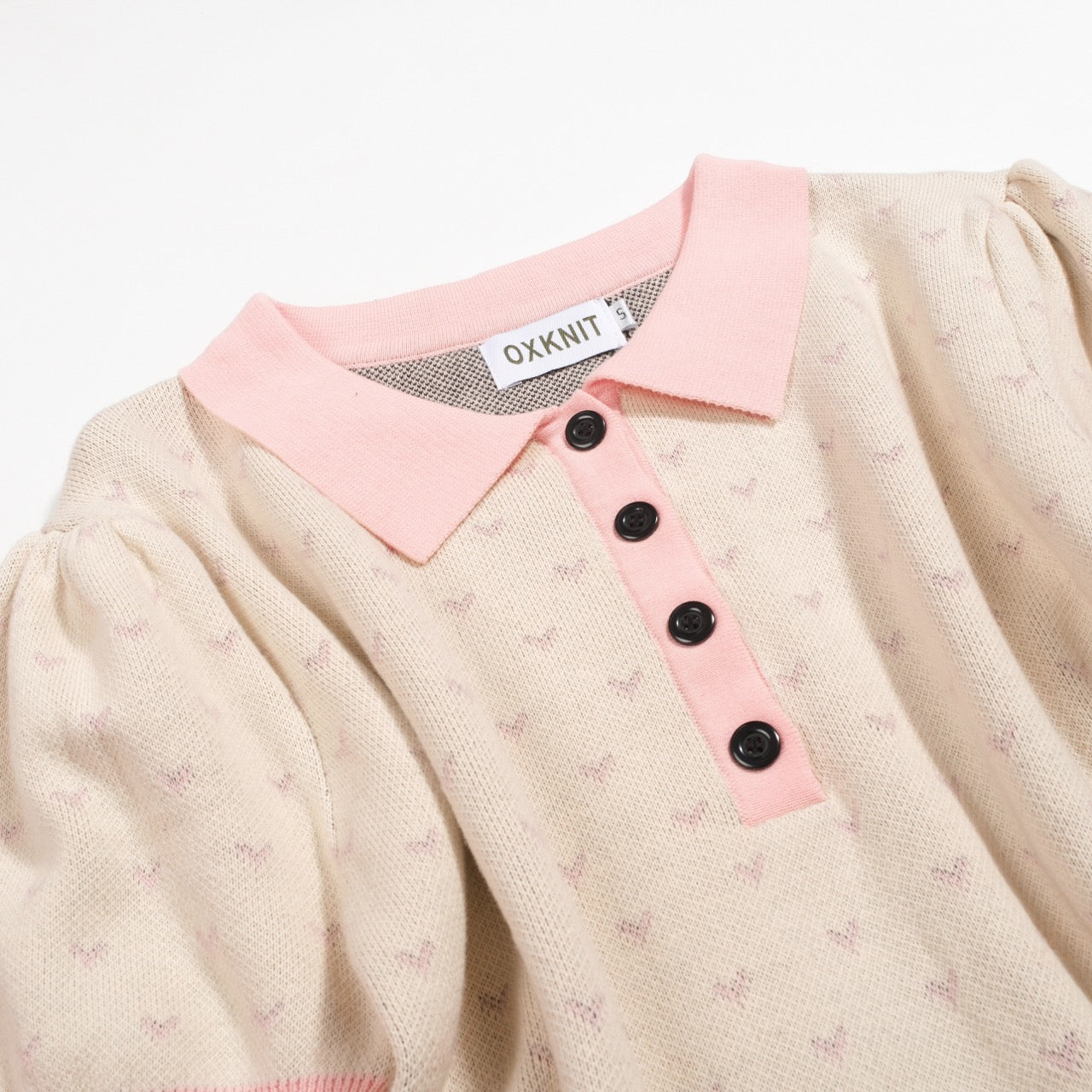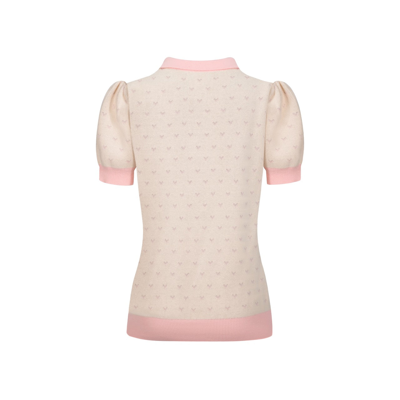 Women's polka dot bird puffed sleeve knitted polo